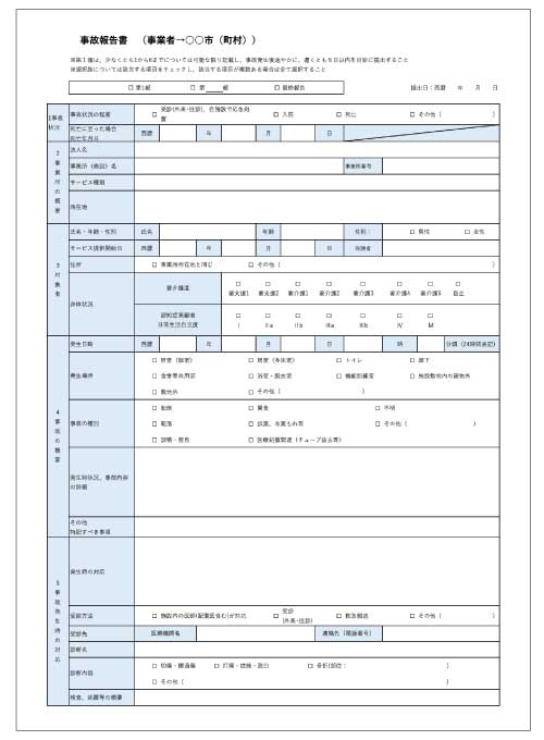 介護事故報告書のテンプレート(Excel形式、PDF形式)を無料でダウンロードいただけます。
