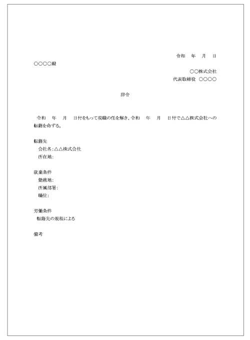 転籍辞令の書式